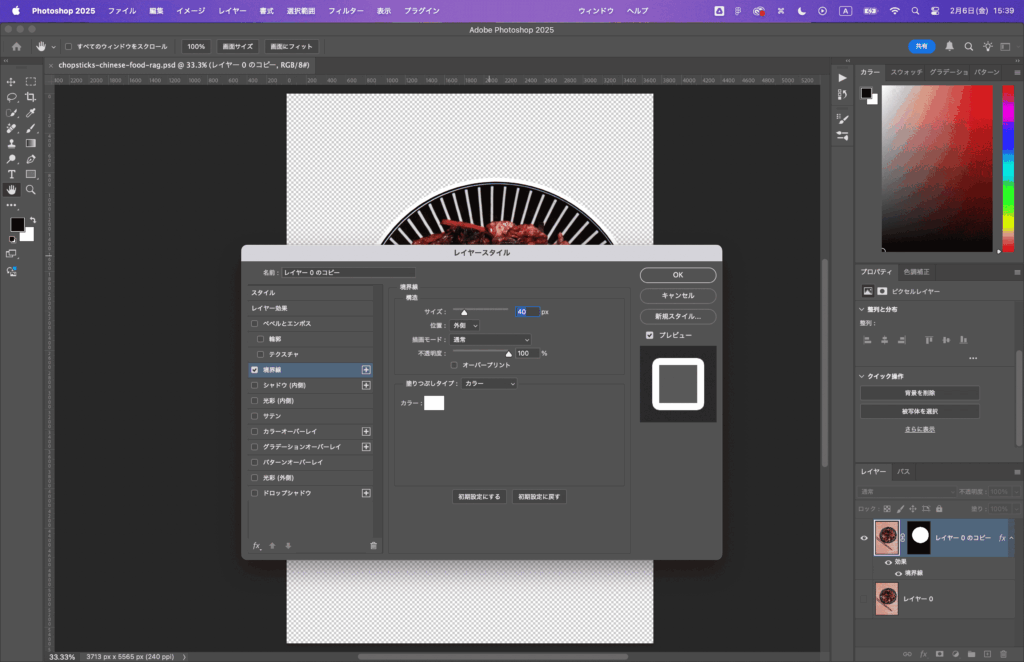Photoshopで切り抜いた画像に白縁をつける方法